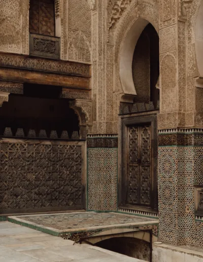Explore the vibrant life of the Medina, where bustling souks offer a kaleidoscope of colors, scents, and sounds. From the vibrant fabrics of the dyers’ souk to the tantalizing aromas of the spice market, Fes is a sensory feast that captures the essence of Moroccan commerce.